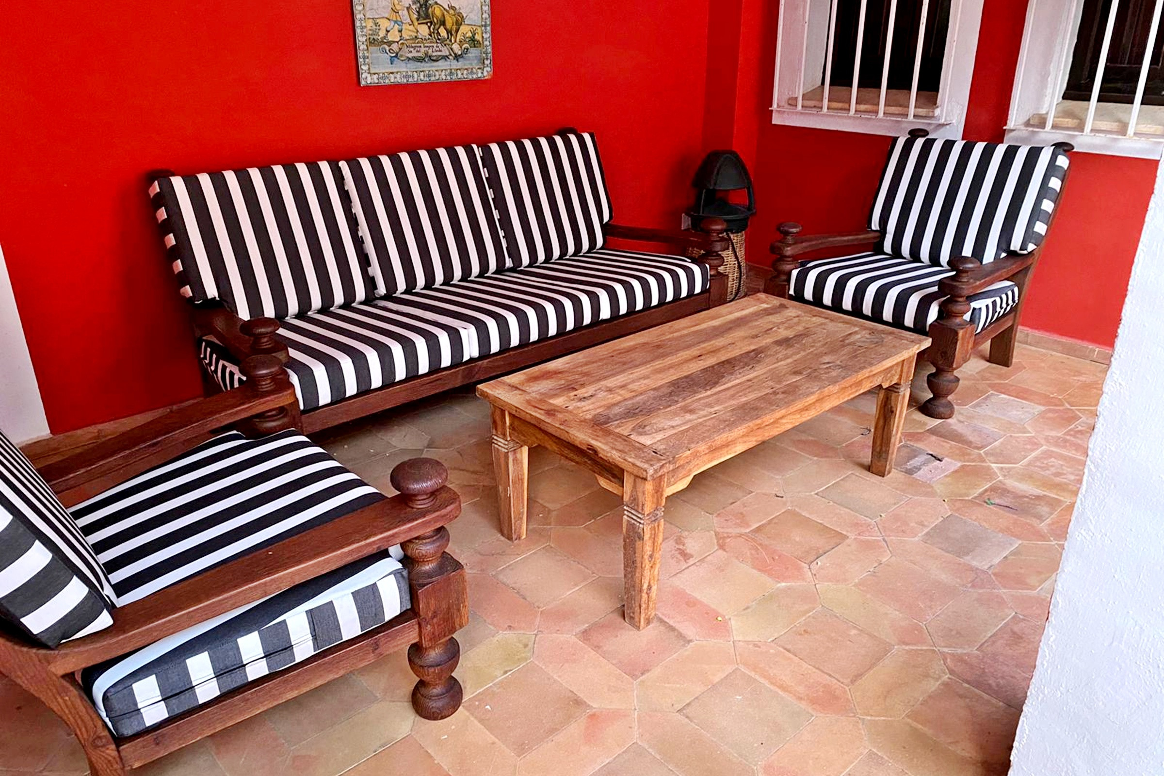 La casa ofrece en 280 m² tres dormitorios, dos baños, un gran salón con chimenea y comedor, cocina y otro apartamento accesible por separado. Además de un dormitorio, un baño con ducha cuenta este apartamento con una amplia sala de estar con sofá, televisión, etc. Y, por supuesto, el hermoso patio con piscina y rincones acogedores no deben faltar.
