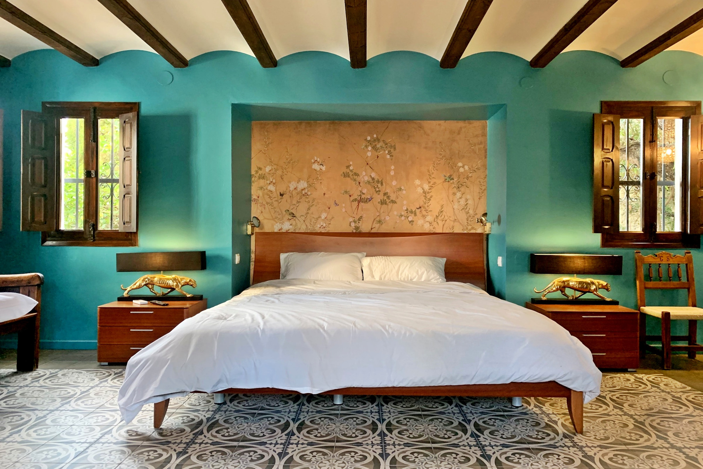 La maison offre sur 280m² trois chambres à coucher, trois salles de bains un grand salon avec cheminée et salle à manger, une cuisine et un autre appartement accessible séparément. Cet appartement a une chambre à coucher, une salle de bain avec douche et dispose d'un grand salon avec canapé, télévision, etc. Et bien sûr, la belle cour avec piscine, bassin à poissons et coins accueillants ne doit pas être méconnu.